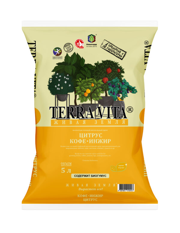 Почвогрунт полностью готовый нейтральный, средней плотности, высокообеспеченный элементами питания. Особенно эффективен для выращивания: цитрусовых, кофе, жасмина, инжира, гранта.